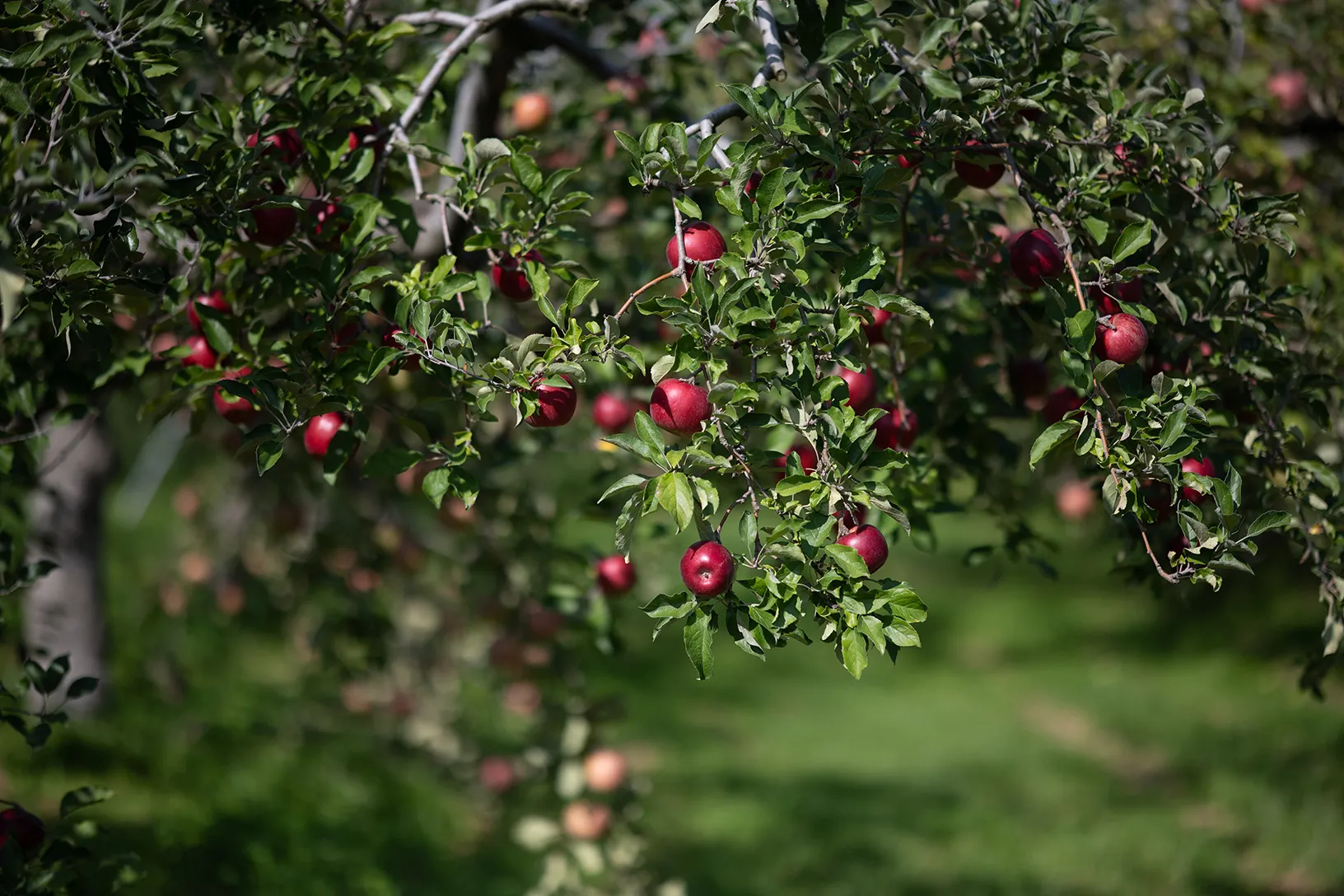 亨りんごの品種によって育て方は変わるので、すべてを同じようにはできません。品種だけでなく、木の状態によっても変わります。たとえば、元気な木とそうでない木とでは、剪定の方法を変えています。土の質も影響するので、化学肥料は一切使わず、堆肥をまいて土づくりをします。秋になると土の水分が抜けてきて、りんごの味が濃くなります。