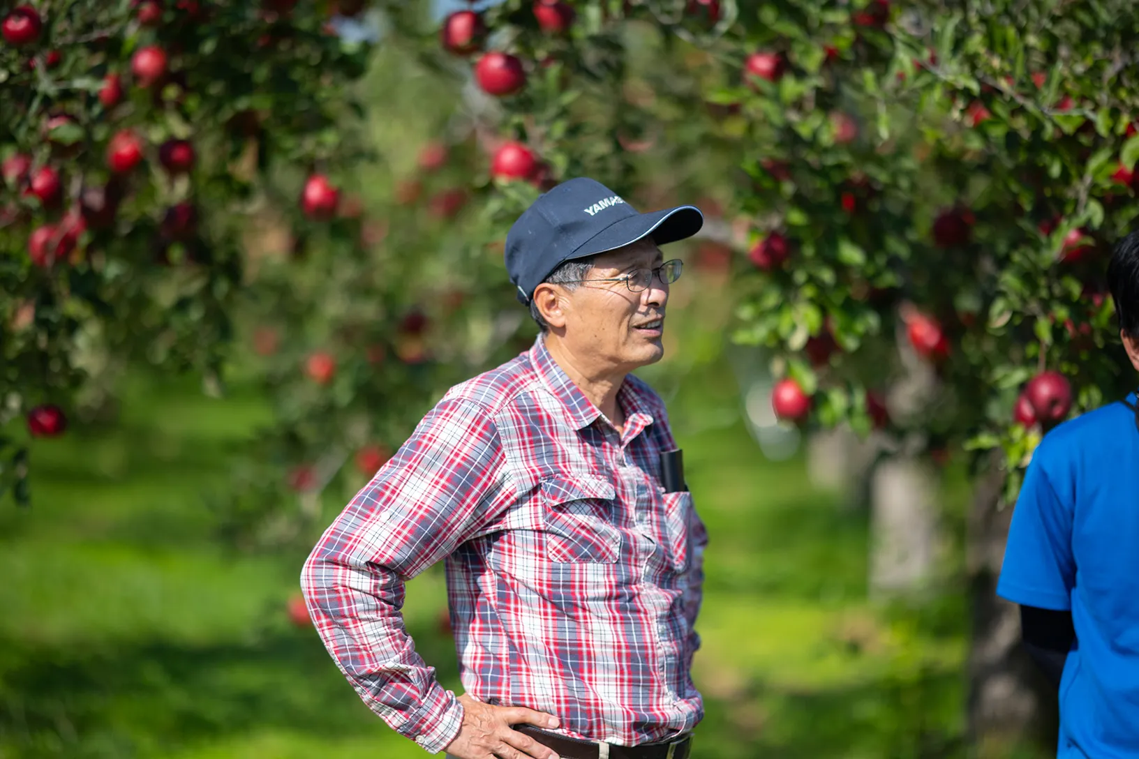 五戸町倉石地区で100年以上続く農家。三代目の父・亨さんの代でりんご専業農家に。亨さんと、息子の啓さん(四代目)を中心に、ふじ、王林、紅玉、ジョナゴールド、早生ふじなど、化学肥料を使わず自然に近い状態で作ることを守っている。食べた人に「おいしい」と言ってもらえるりんご作りにこだわっている。